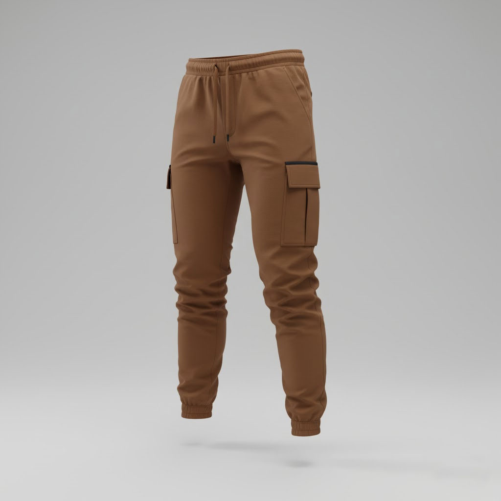 These joggers take the comfortable, tapered fit of modern athleisure and integrate the practical storage of cargo wear. They feature a rich Mocha Tan/Brown color in a smooth, durable material (likely a cotton/poly blend).