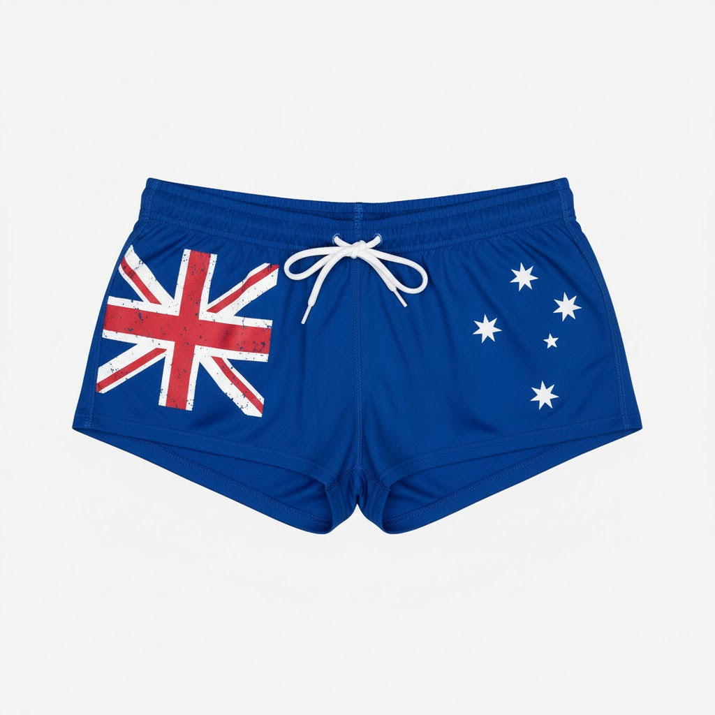 These unique performance shorts feature a bold Royal Blue base adorned with a striking graphic of the Australian Flag. They are engineered for versatility across your key active categories: