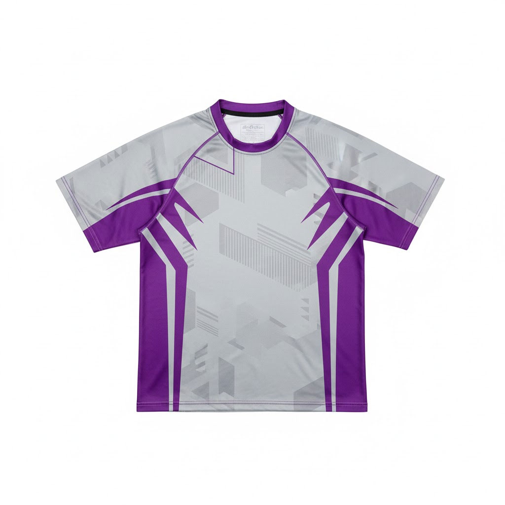 Superior Sublimated Design: The complex grey pattern and vibrant purple accents are dyed into the fabric, ensuring the graphics remain sharp and vivid despite sun exposure, washing, and saltwater contact.
